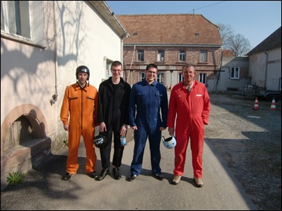 Kameraden Mischnik, Bierwagen Robin, Mohrhardt und Bierwagen Ralf (vlnr) bei der Ausbildung